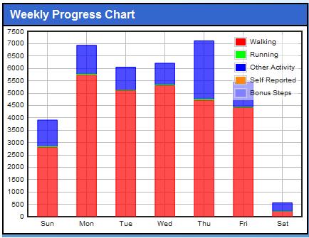 Overall, a pretty decent week. As expected, I crossed the 1,000,000 step plateau, and even had some decent numbers for a Sunday thanks to an ice skating competition, park district basketball, and a birthday dinner. The work week clocked in over 5,000 steps every day, and then a steep plunge on Saturday.