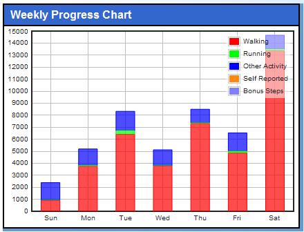 Well, a slow start turned into a pretty good week, helped along, of course, by the 5K on Saturday. The work week itself was pretty good, with every day over 5000 steps and 2 days over 8000. Saturday, between the race and the walk to and from the El, turned out to be my highest step total since I’ve had the tracker, coming in at 14,688 steps.