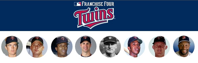 F4TwinsThe Minnesota Twins franchise dates back to 1901 and the original incarnation of the Washington Senators.  Only one of the potential selections, Walter Johnson, dates back to the Senators, but he takes the first slot.  Slugger Harmon Killebrew, who debuted with Washington and became the Twins’ first superstar, takes the second slot.  That leaves 3 Hall of Famers, Bert Blyleven, Rod Carew, and Kirby Puckett, for the final 2 selections.  I will give one spot to Puckett, who led the team to their 2 World Series championships.  The final spot goes to Rod Carew.