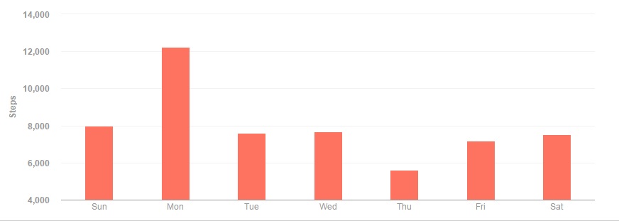 The week got off to a good start, thanks to a Sunday afternoon walk around the neighborhood. Monday I got the sad results of my Wellbeing Assessment, which at least got me out in the afternoon for a 12,000 step day. The rest of the work week was pretty standard, with Thursday being the low point of the week, barely surpassing my goal of 5500 steps. Saturday surpassed my daily goal thanks to a trip to the supermarket and the second-to-last White Sox game of the season.