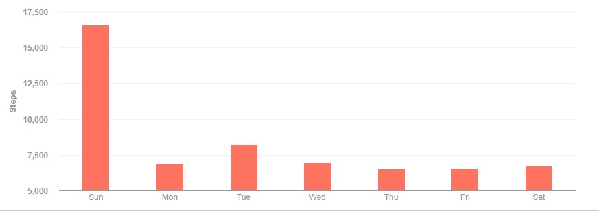 A ho-hum week, bolstered by one tremendous day on Sunday. The week got off to a good start as I finished up my trip to Boston with trips to breakfast, Skywalk Boston, and the Boston Tea Party museum before heading back home. Due to the weekend away, I took Monday off from work and still somehow managed to come in just over my daily goal of 6500 steps. Tuesday was back to work, and I put together 8200 steps for my second highest total of the week. The remainder of the week didn’t even surpass 7000 steps, though each day was above goal.