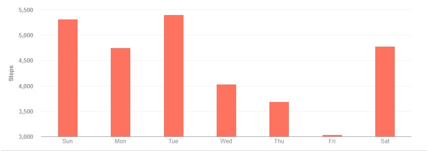 A decent enough week, as I managed to extend my streak of 30,000-step weeks to three even though my 4000-step day streak was snapped after seventeen days. Things got off to a decent start on Sunday, which ended with 5300 steps. A small decrease on Monday wrapped up the Memorial Day weekend with 4700 steps. I made my first trip to the office for 2023 on Tuesday, which helped put me at 5400 steps. Back at home on Wednesday, I dropped down to 4000 steps. My 4000-sted day streak came to an end on Thursday, as I finished 7 steps shy of 3700. Friday was even worse, dropping down to 3000 steps. A record-breaking White Sox game on Saturday left me just 23 steps away from 4800.