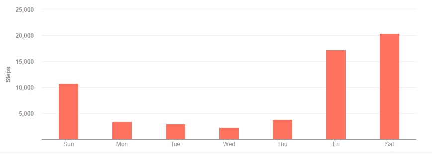 A very schizophrenic week, with 3 days over 10,000 and the other 4 below 3800. Things got off to a good start on Sunday, where some unseasonably nice weather led to a neighborhood walk that put me over 10,700 steps. Monday’s Christmas Eve celebrations left me under 3500 steps, while Christmas Day was no better with just over 3000 steps. Boxing Day was the low point of the week, with less than 2300 steps. Things improved slightly on Thursday, thanks to a lunch date in the city with Val, which garnered me nearly 3800 steps. A flight to California on Friday, followed by a walk down Hollywood Blvd to check out the Hollywood Walk of Fame improved things dramatically, ending with over 17,200 steps. A trip to Disneyland on Saturday to see Danny perform put me over 20,300 steps.