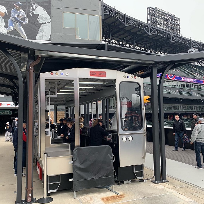 This offseason, Miller replaced Budweiser as the beer vendor of choice, so the goose is gone and the area has been rebranded as the Miller Lite Landing. The CTA car remains, but has been rebranded from a Green Line, which was one of Goose Island’s brands, to a Red Line, which serves the ballpark.
