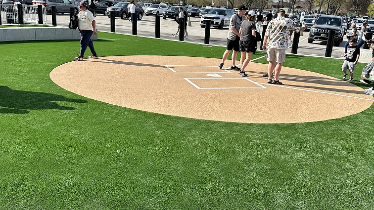 The area surrounding the home plate from old Comiskey Park in parking lot B has been surrounded by artificial turf and blocked off from the rest of the parking lot. In addition, strips of trees and vegetation has been planted across the divider between the lot and Gate 5. While the reduced room in the lot makes it harder for me to park there, this is an overall net positive.