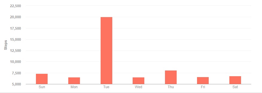 A decent week with one tremendous day that made the overall total look great.  The week got off to a pretty good start on Sunday, with over 7300 steps to my credit.  Monday just squeaked past 6500 steps, as the drama from the week before reignited with everyone back at work.  Tuesday combined the Sprint & Stride, helping Val buy and set up a TV in her new apartment, and Season Ticket Holder Family Day at Wrigley Field for my 3rd 20,000 step day of the year and 6th overall.  Wednesday had a tremendous drop off, finishing a mere 28 steps above my daily goal.  Thursday improved a bit to back over 8000 steps.  Friday was back down around 6600 steps.  Saturday used a night trip to Guaranteed Rate Field to wrap up the week with nearly 6800 steps.