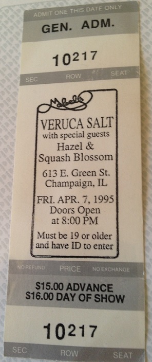95verucasaltIn the spring of 1995, I made plans, along with my friends Tina and Kelley, to travel from West Lafayette over to Champaign to see Veruca Salt, who was playing one of the bars at the University of Illinois.  The task of acquiring tickets was left up to my sister, who joined us at the show.
